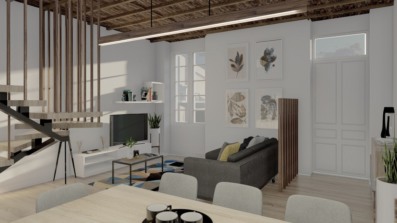 La propiedad buscaba una vivienda moderna y de gran calidad. En la rehabilitación integral se propone mantener el reflejo de la vivienda original pero con un giro a la actualidad. La vivienda se encuentra en pleno centro urbano y con una orientación muy desfavorable. Por lo que se propone volcar la vida hacia la luz sur captada por el patio interior que queda como corazón y conector visual de la vivienda.